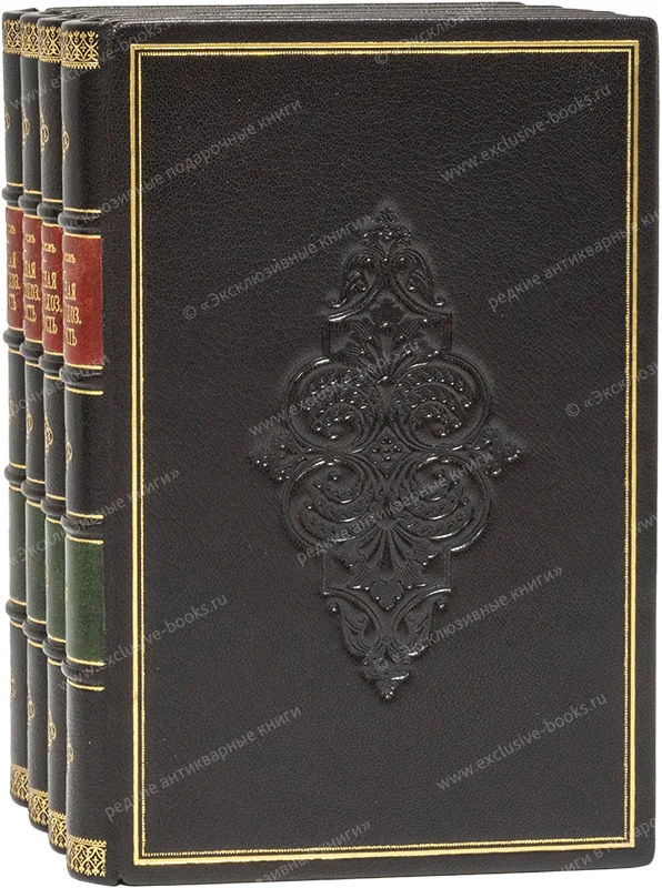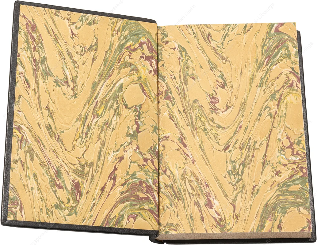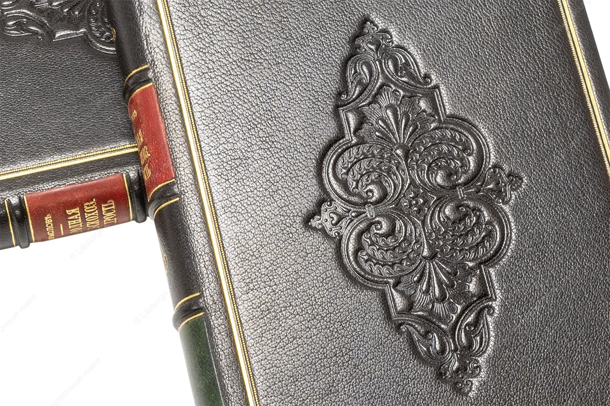 Французский кожаный переплёт ручной работы. Чёрная шагреневая кожа (Франция). Тиснение золотой фольгой. Возможно изготовление подарочного футляра на выбор.