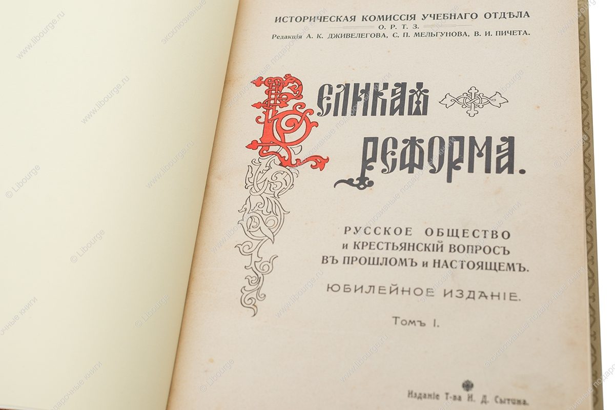 «Великая реформа» — первое и наиболее известное из серии «роскошных» в книгоиздательской терминологии того времени юбилейных изданий, предпринятое издателем Иваном Сытиным в 1910-е годы. В издании детально изложена политика Российского государства в отношении крестьянства начиная с XVI в., развитие крепостного права, его роль в истории страны и негативное влияние на экономику к середине XIX в. Показано место крепостного права в жизни дворян, описаны дворянский быт, отношения дворян к крестьянам, находящимся у них в собственности. Уделено внимание различным формам крестьянского протеста: побегам, выступлениям, войне под руководством Е.Пугачева. В связи с крестьянским вопросом уделяется внимание деятельности царских особ, выдающихся политиков, военных. Показано стремление передовой части русского общества к отмене крепостного права, и в этой связи охарактеризована деятельность масонов и декабристов. Большой интерес представляют главы, посвященные крестьянскому быту, организации хозяйства и этнографическим особенностям крестьян различных губерний. Основное внимание в книге уделено подготовке и проведению реформы по отмене крепостного права 19 февраля 1861 г. и ее последствиям. В книге прослеживается то, как отразилось крепостное право в искусстве и литературе. В издании помещены многочисленные юридические документы, законодательные акты, указы и т.п., касающиеся положения крестьян. Книга вышла к 50-летнему юбилею публикации манифеста. Издание стало знаковым в истории научной и общественной мысли и в истории русского книжного дела. В авторский коллектив вошли выдающиеся ученые-историки, среди которых были академики Н.Н. Златовратский, А.Ф. Кони, А.С. Лаппо-Данилевский, профессора М.М. Богословский, М.В. Довнар-Запольский, А.А. Кизеветтер, В.Д. Кузьмин-Караваев, М.К. Любавский, В.И. Семевский, М.И. Туган-Барановский и др., а также множество молодых талантливых ученых либеральной, как правило кадетской, ориентации.