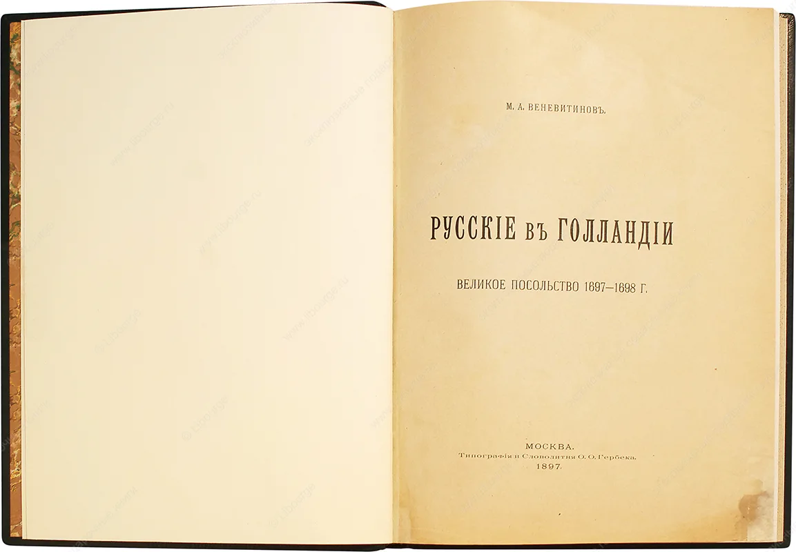 Приуроченная к 200-летию Великого посольства, в 1897 г. в Москве вышла монография М. А. Веневитинова "Русские в Голландии". Эта научная работа стала первым специализированным исследованием, где рассматривалось только Великое посольство с подробным анализом источников. Труд основан на "Речи по поводу первого путешествия Петра Великого" Ж. Меермана и "Посольских книгах" миссии. Автор подробно разобрал труд Меермана, доказав его оригинальность по сравнению с работами Я. Схельтема, выявил материалы, которые использовал голландский ученый.