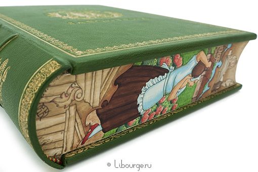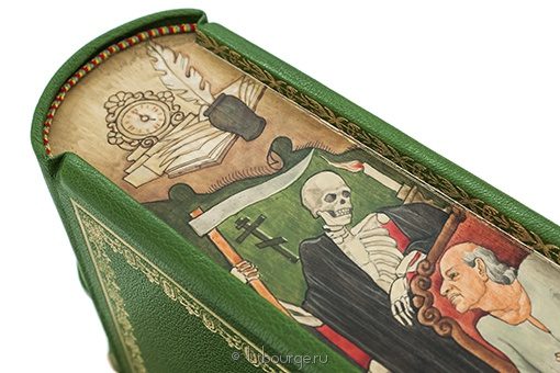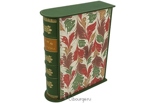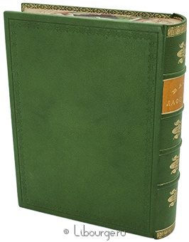 Французский переплет из натуральной шагреневой кожи. Вручную расписанные обрезы. Подарочный полукожаный футляр, обклеенный мраморной бумагой.