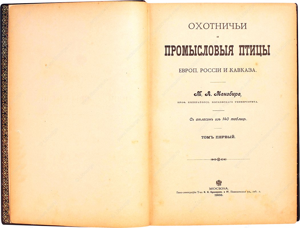 Михаил Александрович Мензбир (1855-1935) – профессор Московского университета, доктор зоологии, в 1896 г. был избран членом-корреспондентом Российской Академии наук. После окончания в 1878 г. Московского университета (его дипломная работа была удостоена золотой медали) М.А. Мензбир был оставлен на кафедре зоологии для подготовки к профессорскому званию. В 1879 г. он начал работать над магистерской диссертацией «Орнитологическая география Европейской России», которую успешно защитил в 1882 г. Обязательную после магистерской диссертации двухгодичную заграничную командировку М.А. Мензбир провел в университетах и музеях Европы, изучая зоогеографию и сравнительную анатомию животных и уделяя особое внимание эволюционным проблемам. Вернувшись в 1884 г. в Московский университет, Мензбир получил должность приват-доцента. Новым этапом в отечественной науке тех лет стала его докторская диссертация «Сравнительная остеология пингвинов в приложении к основным подразделениям класса птиц». В возрасте 31 года Михаил Александрович был утвержден экстраординарным профессором по кафедре сравнительной анатомии и зоологии, став одним из самых молодых профессоров-зоологов за всю историю Московского университета. М.А. Мензбир являлся признанным главой сравнительных анатомов нашей страны: преподавал на кафедре сравнительной анатомии, руководил кабинетом сравнительной анатомии Московского университета.