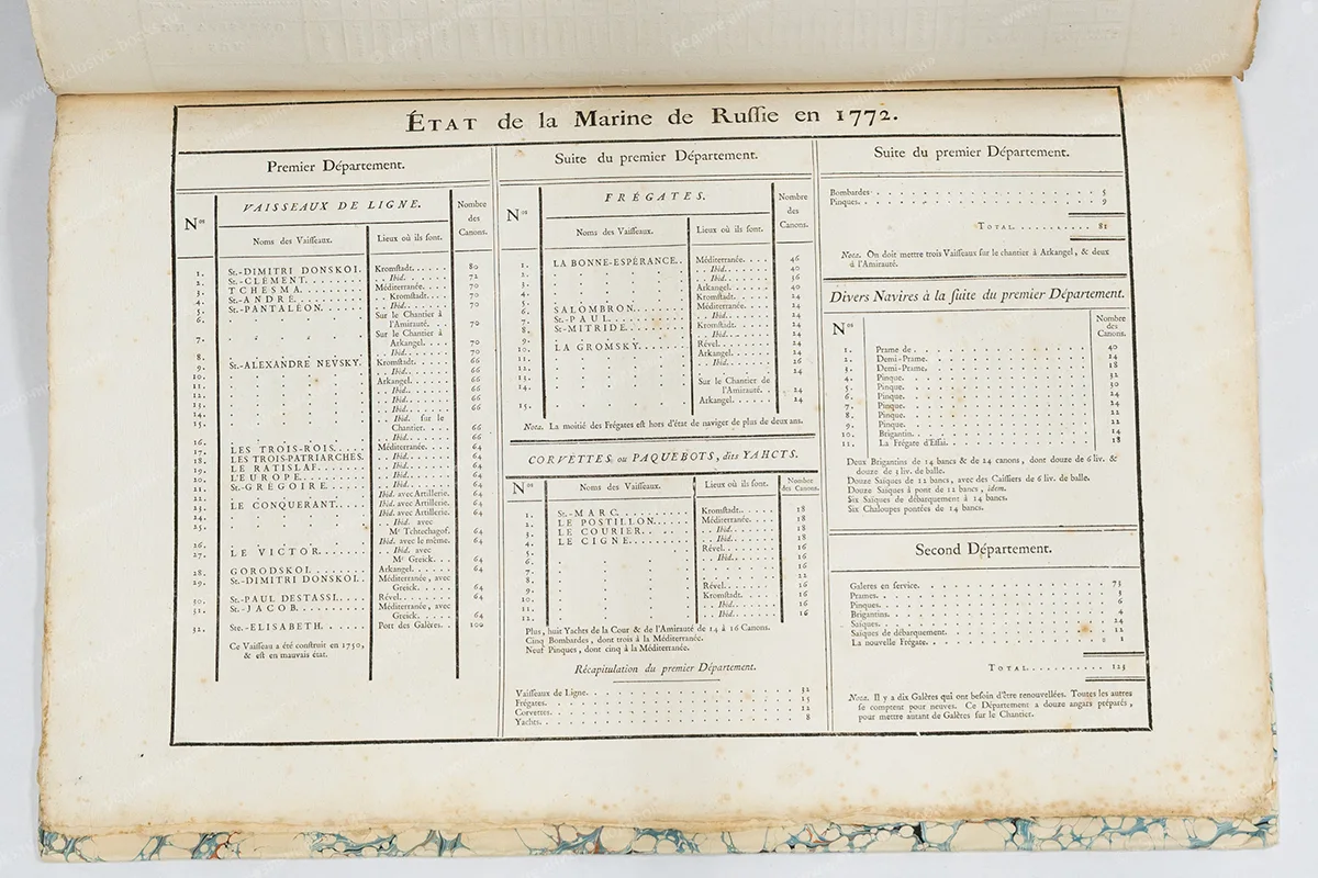 Атлас является приложением к «Истории естественной, нравственной, гражданской и политической Древней Руси и Современной России» в 6 томах, написанной Николя-Габриэлем Леклерком и изданной во Франции в 1783-1784 годах.