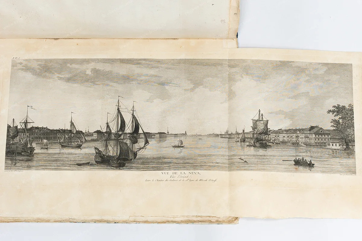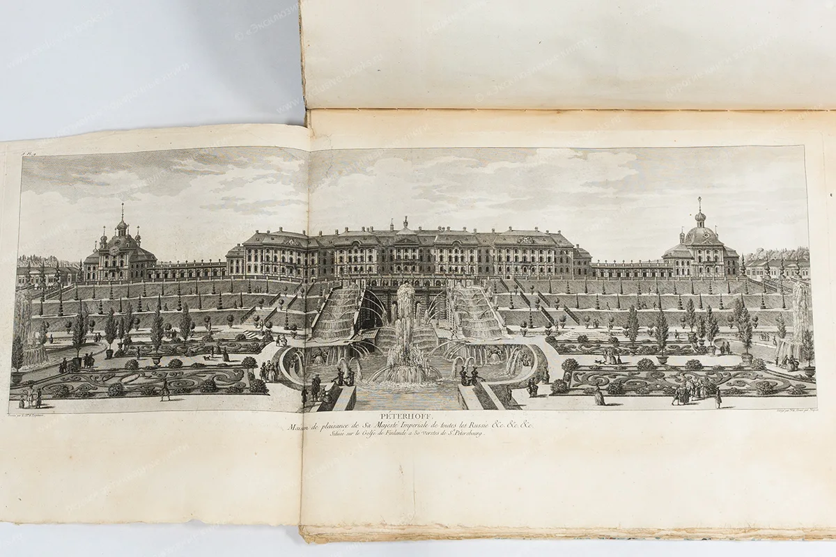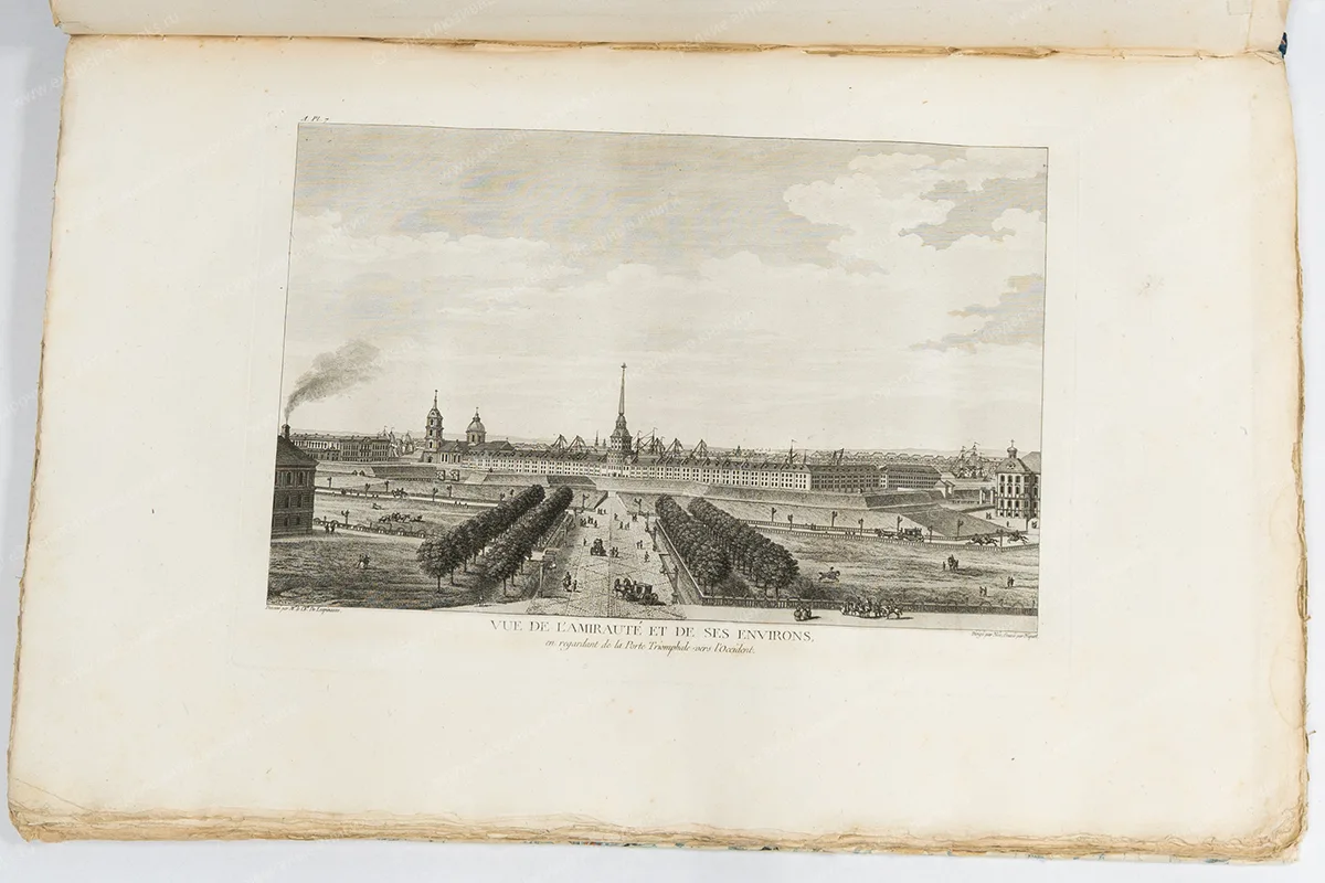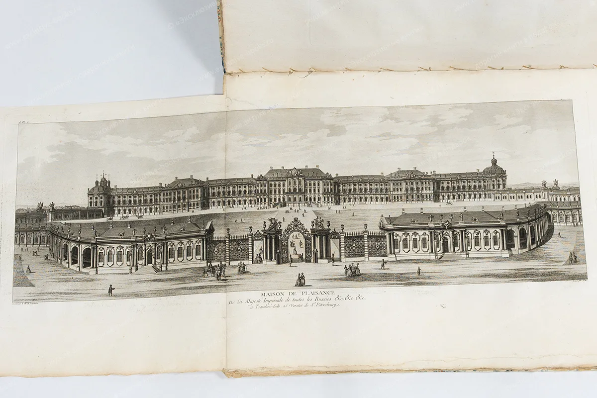 Гравюры, подшитые в твёрдый переплёт с мраморной бумагой. Возможно изготовление подарочного футляра на выбор.