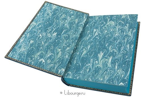 Переплет из натуральной шагреневой кожи по "французской" технологии, выполненный вручную. Тиснение позолотой. Верхний обрез золоченый. Боковой и нижний обрезы окрашены в тон цвета обложки. Форзац из мраморной бумаги, окрашенной вручную. Красивый дизайнерский полукожаный подарочный футляр.