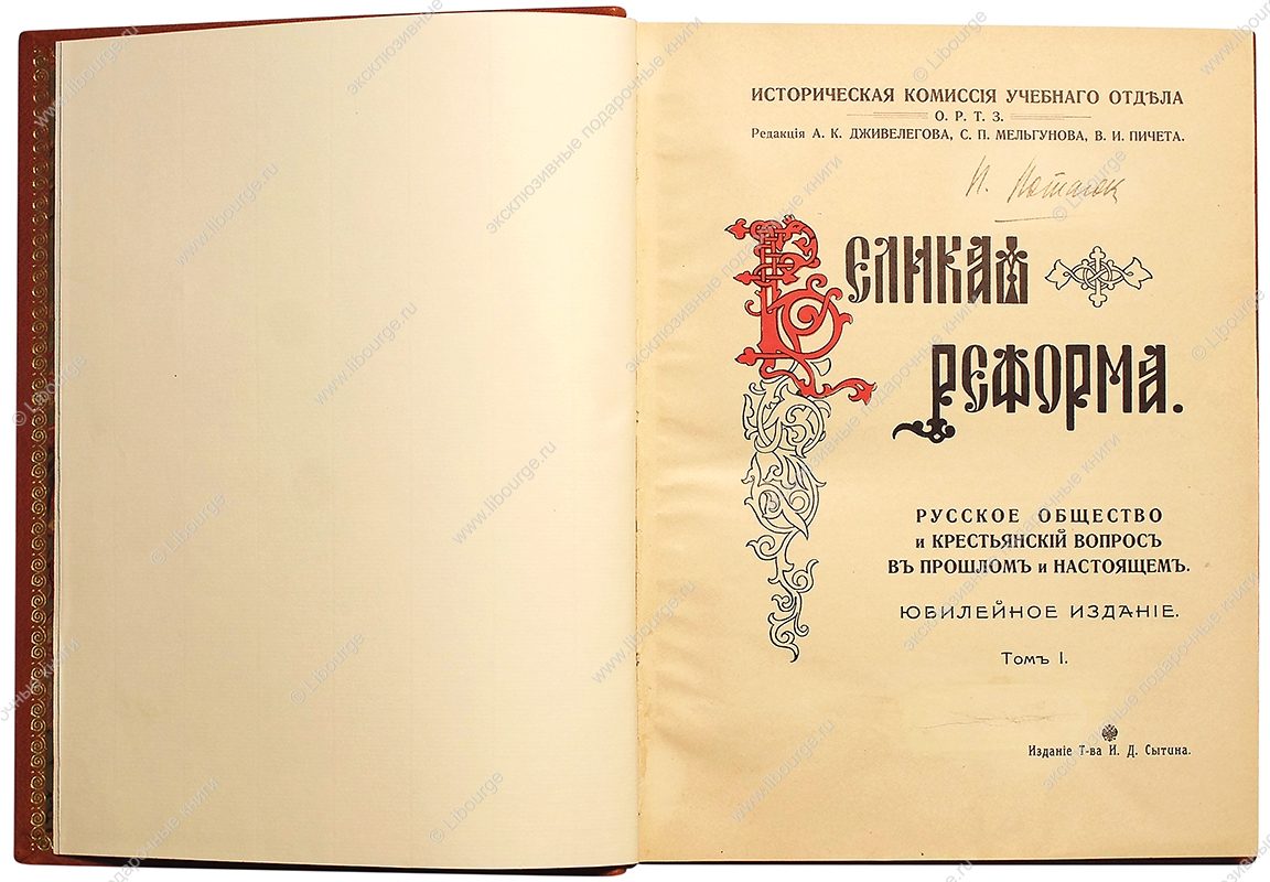 «Великая реформа» — первое и наиболее известное из серии «роскошных» в книгоиздательской терминологии того времени юбилейных изданий, предпринятое издателем Иваном Сытиным в 1910-е годы. В издании детально изложена политика Российского государства в отношении крестьянства начиная с XVI в., развитие крепостного права, его роль в истории страны и негативное влияние на экономику к середине XIX в. Показано место крепостного права в жизни дворян, описаны дворянский быт, отношения дворян к крестьянам, находящимся у них в собственности. Уделено внимание различным формам крестьянского протеста: побегам, выступлениям, войне под руководством Е.Пугачева. В связи с крестьянским вопросом уделяется внимание деятельности царских особ, выдающихся политиков, военных. Показано стремление передовой части русского общества к отмене крепостного права, и в этой связи охарактеризована деятельность масонов и декабристов. Большой интерес представляют главы, посвященные крестьянскому быту, организации хозяйства и этнографическим особенностям крестьян различных губерний. Основное внимание в книге уделено подготовке и проведению реформы по отмене крепостного права 19 февраля 1861 г. и ее последствиям. В книге прослеживается то, как отразилось крепостное право в искусстве и литературе. В издании помещены многочисленные юридические документы, законодательные акты, указы и т.п., касающиеся положения крестьян. Книга вышла к 50-летнему юбилею публикации манифеста. Издание стало знаковым в истории научной и общественной мысли и в истории русского книжного дела. В авторский коллектив вошли выдающиеся ученые-историки, среди которых были академики Н.Н. Златовратский, А.Ф. Кони, А.С. Лаппо-Данилевский, профессора М.М. Богословский, М.В. Довнар-Запольский, А.А. Кизеветтер, В.Д. Кузьмин-Караваев, М.К. Любавский, В.И. Семевский, М.И. Туган-Барановский и др., а также множество молодых талантливых ученых либеральной, как правило кадетской, ориентации.