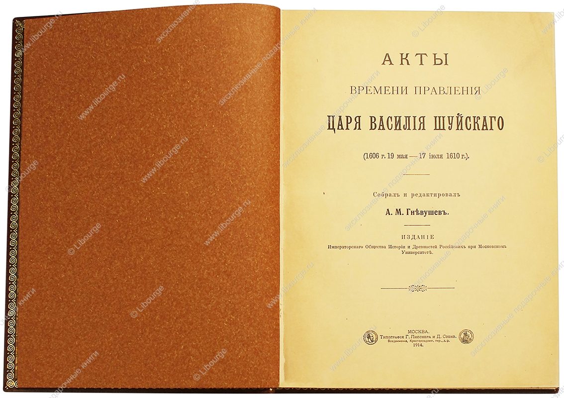 Сборник актов времени правления царя Василия Шуйского составлен преимущественно из документов, хранящихся в Московском Главном Архиве Министерства Иностранных Дел, причем фонды этого Архива были изучены по возможности с исчерпывающей полнотой. Что касается до фондов других Московских Архивов (Министерства Юстиции и Императорского Двора), то их основательное обследование не входило в задачи редактора настоящого издания, и из них были извлечены и изданы только отдельные случайные документы.