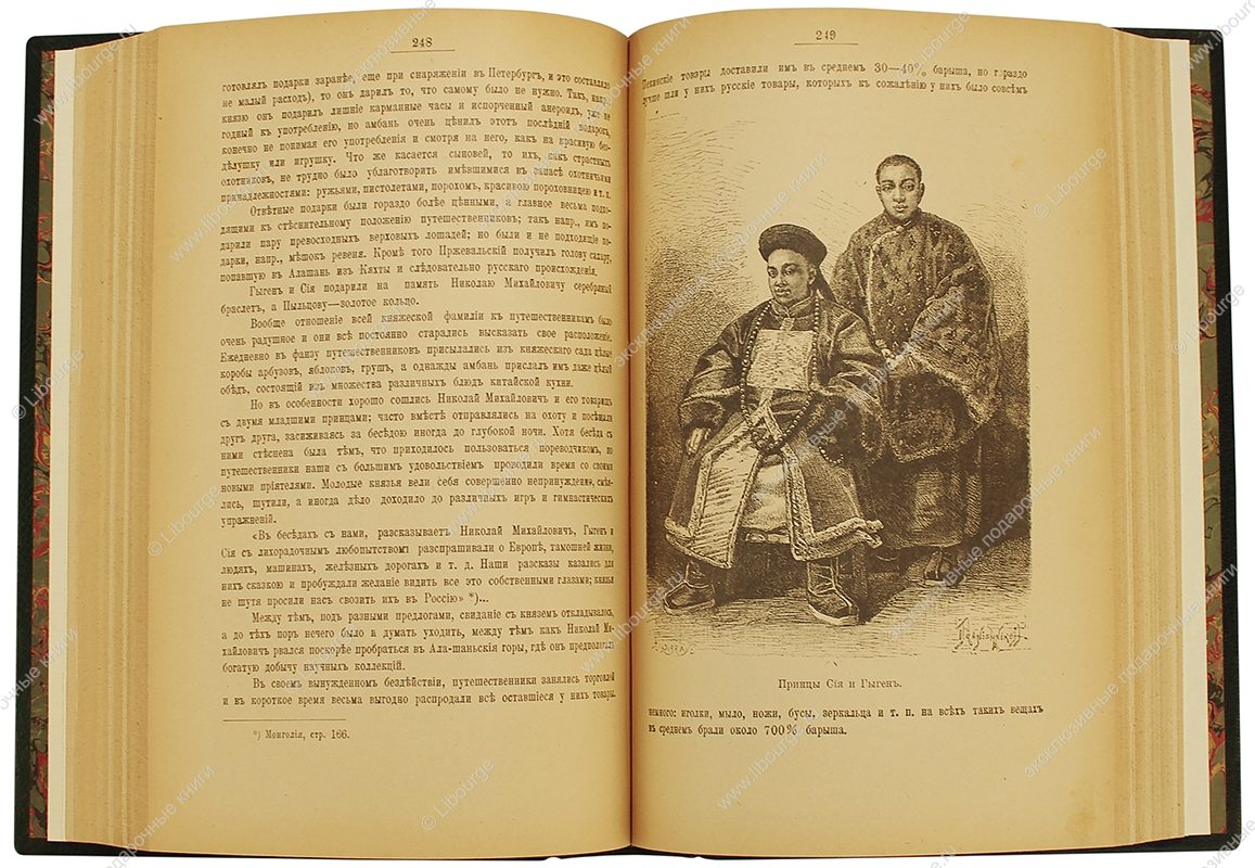 - Том I. Часть 1-я: «Первые периоды жизни Пржевальского» — «Путешествие в Уссурийский край». «Четыре путешествия по Центральной Азии (Монголия, Восточный Туркестан и Тибет)» — «Второе путешествие в Центральной Азии»