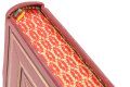 Книга исполнена по старинной французской технологии. Переплет цельнокожаный, из натуральной шагрени (Франция). Бумага верже, кремовая. Блок сшит на пяти шнурах. Форзац выполнен из мраморной бумаги ручного крашения. Дублюра окатана вручную 23-каратным золотом. Обрез блока с художественным оформлением. Ляссе шелковое, каптал ручного плетения. Индивидуальный футляр.