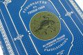 Классический французский переплет на шнурах, из натуральной кожи Шагрень (пр-во Франция). Комбинированное тиснение обложки и корешка. Вставки из цветной кожи на обложке и корешке. Форзац из мраморной бумаги ручной окраски. Верхний обрез окрашен и гравирован орнаментом вручную. Боковой и нижний обрезы торшонированы. Дублюра украшена золотым орнаментом. Книга вложена в индивидуальный футляр из дизайнерской бумаги с кожаной окантовкой.