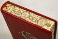 Цельнокожаный переплет изготовлен в стиле художественного английского переплета конца XVI века из марокена (теленок) красного цвета специальной переплетной кожи высшего качества для художественный переплетов (Германия). Тиснение на переплете выполнено горячим инструментом с использованием штампа стиля штрихованный альд. На крышках переплета: серебро 925 пробы, 9 бриллиантов диаметром 1,5 мм по 0,017 карат (общий вес 0,15 карат). Форзац: ALEZAN фабрики GMUND (Германия). Каптал ручного плетения (шелк двух цветов). Трехсторонний расписанный обрез (китайская тушь, золотая тушь OCALDO, Великобритания). Узор на обрезе английский орнамент конца XVI века. Возможно изготовление подарочного футляра на выбор.