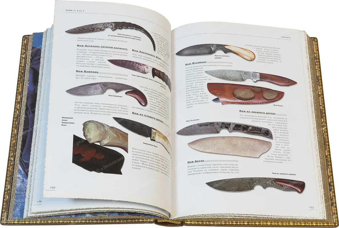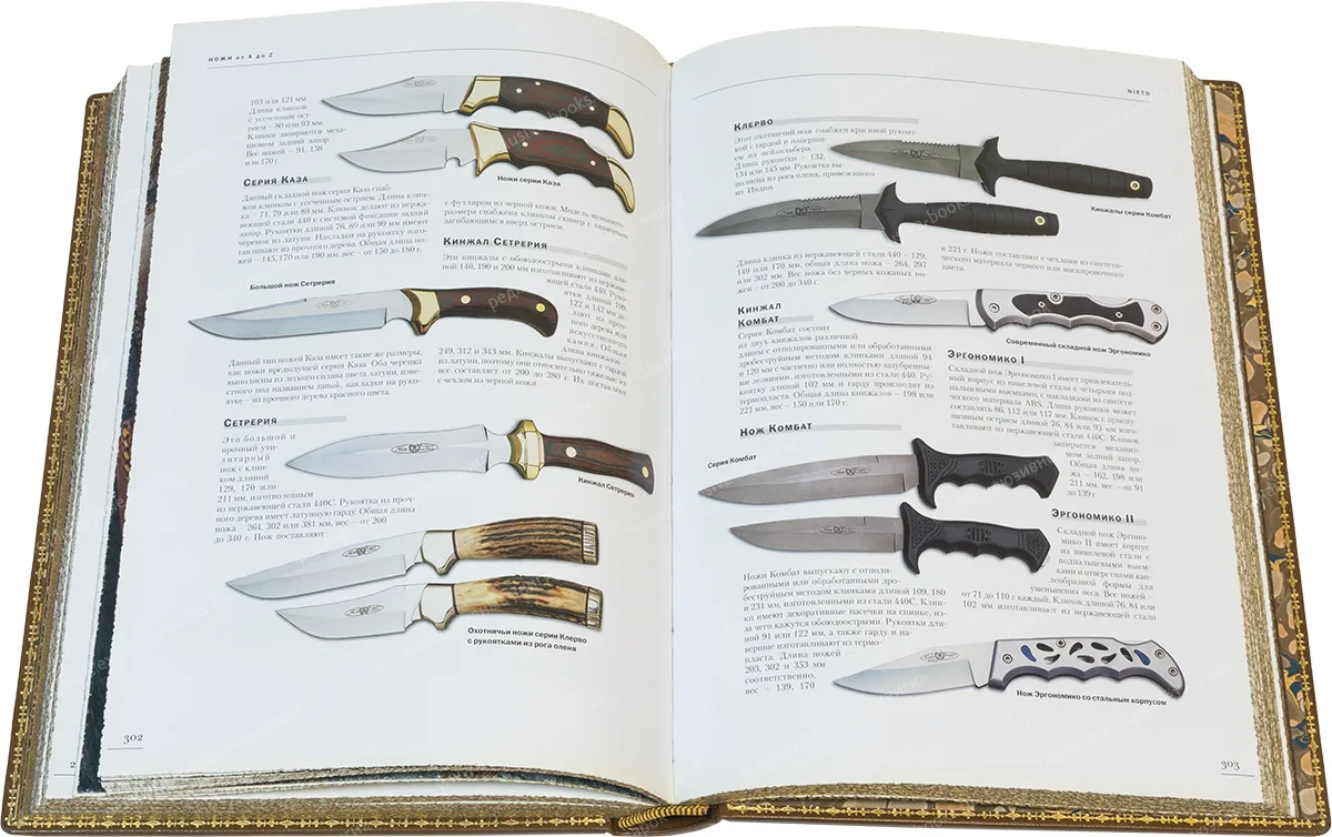 - сведения о ножах XX и XXI вв., составленные в алфавитном порядке;