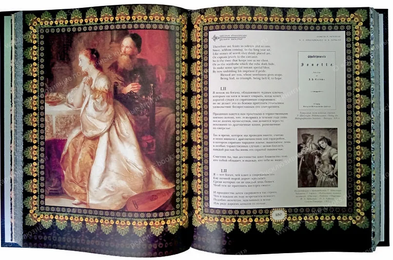 1200 иллюстраций включают в себя почти все известные портреты Шекспира, портреты его современников, иллюстрации из лучших изданий, репродукции живописи прерафаэлитов, факсимиле первых изданий XVII века…