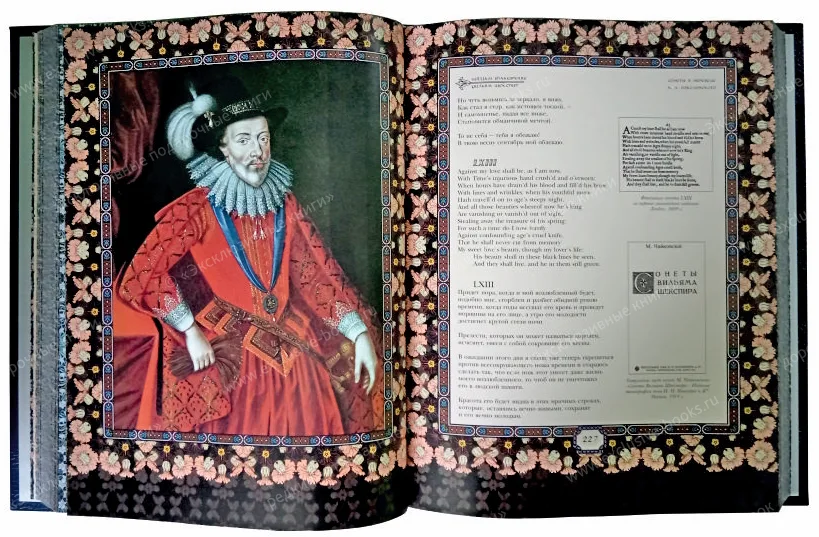 Шекспир – драматург охватил своим гением весь мир, представил его в виде театра, в котором все актеры. И тем не менее, Шекспир прежде всего поэт. Таково его первопризвание: драматургом он стал по необходимости, так сложилась его жизнь. И как бы ни была грандиозна работа Мастера, суть его гения – в произведениях, написанных в первые годы не отягощенной творческой свободы. Полторы сотни сонетов Шекспира как раз и есть эта составляющая его наследия. Это издание сонетов Шекспира вряд ли удастся превзойти. Кроме сонетов (несколько лучших вариантов перевода на русский язык (М.И. Чайковский, Н.В. Гербель), в том числе прозаический перевод, исключающий неизбежные искажения смысла, английский текст и факсимильные воспроизведения первого издания XVII века), в книгу включены приложения: завещание Уильяма Шекспира (на русском и английском языках, в том числе и факсимиле), статьи о сонетах, предисловия из лучших дореволюционных изданий, подробные примечания к каждому сонету, указатель первых строк сонетов (на русском и английском языках), предметный, именной, географический указатели, хронология жизни и творчества Шекспира.