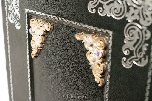 Французский кожаный переплет. Украшение - Серебро 88гр (проба №925). Цветные фианиты. Возможно изготовление подарочного футляра на выбор.