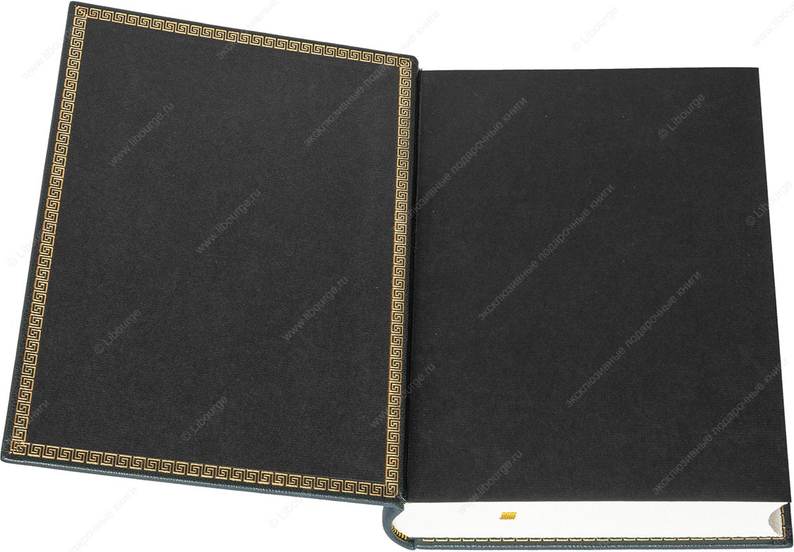 Кожаный переплёт ручной работы. Шагреневая кожа цвета теал. Тиснение блинтовое и золотой фольгой. Передний и нижний обрезы торшонированные. Верхний обрез шлифованный, окрашенный в черный цвет и гравированный орнаментом с золочением. Шёлковые капталы. Форзацы из дизайнерской бумаги. Кожаные слизуры. Дублюры украшены орнаментом с 4-х сторон. Шёлковое ляссе. Подарочный футляр.