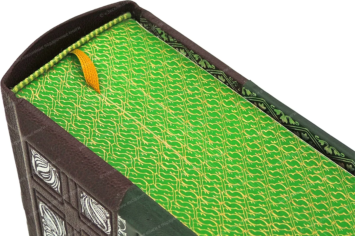 Кожаный переплёт ручной работы. Возможно изготовление подарочного футляра на выбор.