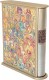 Кожаный переплёт ручной работы. Золотая шагреневая кожа (Италия). Аппликации из нубуковой кожи (Испания). Тиснение золотой, серебряной и бирюзовой фольгой. Обрезы с трёх сторон тонированные и краплёные золотой краской. Кожаные капталы. Свободные листы форзацев из мраморной бумаги ручного окрашивания (Италия), форзацы на крышках - кожаные с тиснением рисунка и украшением дублюр орнаментом. Подарочный футляр с постаментом, мраморной бумагой и тиснением.